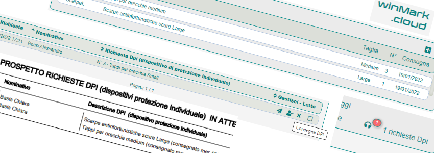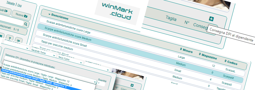 Tutto questo è gestito in modo semplice e intuitivo, archiviando tutta la storicità delle richieste e consegne dei DPI dipendenti, in modo da poter verificare direttamente da winMark.cloud in ogni momento cosa è stato consegnato e a chi.