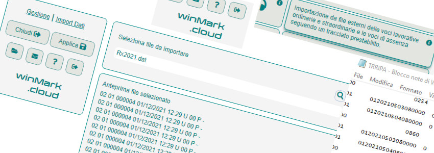 Inoltre, è possibile anche : winMark.cloud permette l’importazione di timbrature provenienti da altri terminali con tracciati diversi, importare dati di presenti ed assenti provenienti da altri Software di gestione aziendale. Il sistema è in grado di riconoscere ogni dato e posizionarlo nel posto giusto. winMark.cloud non è chiuso in sé, ma ha tutto ciò che è necessario per assimilare e condividere informazioni e dati.