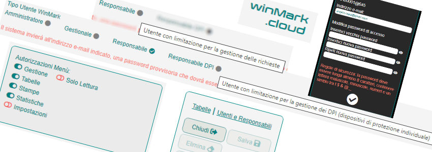 La gestione, la manipolazione e l’utilizzo dei dati di winMark.cloud è vigilato e controllato dai suoi utenti. Per ogni utente è possibile impostare delle policy di sicurezza che definiscono in modo semplice e completo le sue limitazioni.
