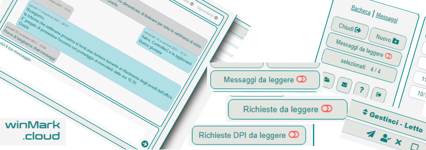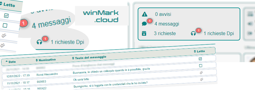 La permette la comunicazione scritta tra i dipendenti e i propri responsabili. Necessiti di un documento, di una informazione? Scrivi al tuo responsabile e lui risponderà al tuo messaggio; ogni volta che qualcuno ti invierà un messaggio, winMark.cloud ti invierà una alla tua casella mail per avvisarti.